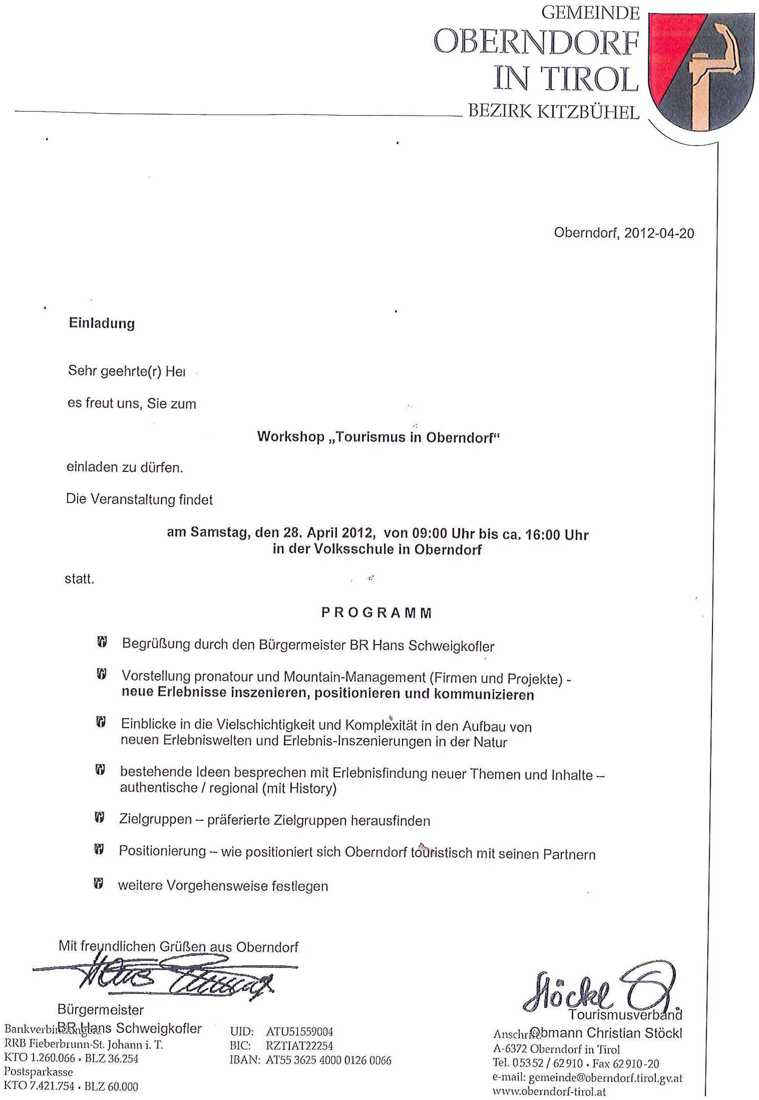 [u]E i n l a d u n g[/u] zur öffentlichen Gemeinderatssitzung am Montag, den 12. März 2012 um 17,oo Uhr im Sitzungszimmer der Gemeinde Oberndorf i.T.
