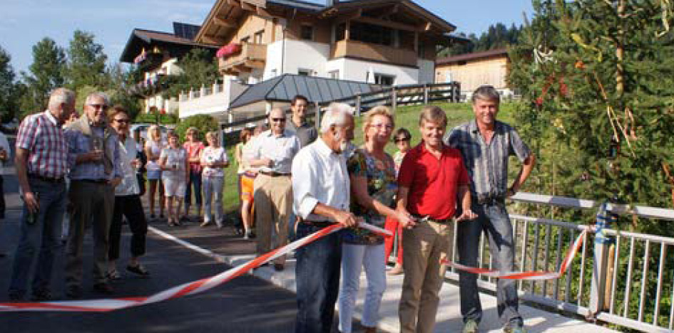 Die Steinerbachbrücke wurde im Sommer komplett saniert wodurch die Brücke nun für Fahrzeuge aller Gewichtsklassen passierbar ist. Zur Sicherheit der Fußgänger – v.a. der vielen Schulkinder - wurde ein abgegrenzter Gehweg errichtet, der durch Anton Steixner besonders gelobt wurde. Ein zukunftsorientiertes Projekt auch für das in Steinerbach 1 angesiedelte, traditionelle Bauunternehmen Fröschl Bau. Eduard Fröschl betonte die Wichtigkeit des Standortes Oberndorf, der seit 1979 kontinuierlich gewachsen ist und ausgebaut wurde. Hans Schweigkofler bedankte sich nach einem kurzen Blick in die „Vergangenheit“ der Steinerbachbrücke sehr herzlich bei allen Partnern für das zügige und reibungslose Umsetzen des Projektes und richtete seinen Dank auch ganz besonders an die Grundbesitzer.