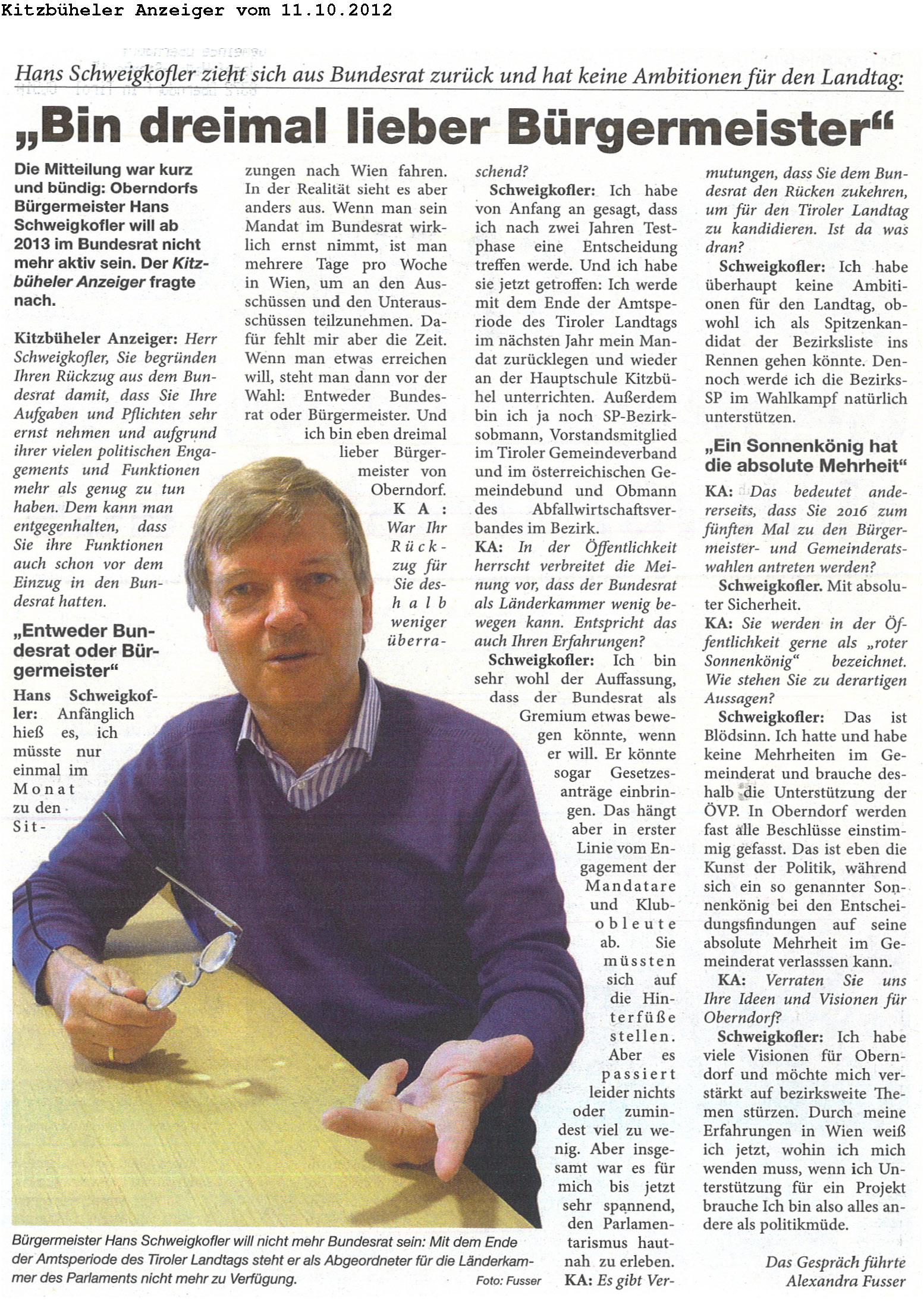 Auszug vom "Kitzbühler Anzeiger"