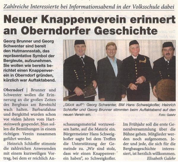 Georg Brunner und Georg Schwenter haben die Initiative zur Gründung eines Knappenvereines ergriffen, den ich gerne unterstützen werde. Die Aufgabe und Ziel der Führung des Knappenvereins ist es, durch das Auftreten und Engagement an